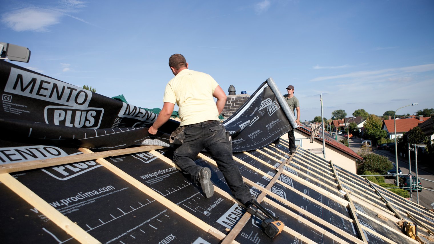 The windtightness layer protects the insulation material on the outside against rain, snow and wind. It also stops cold outside air flowing through the thermal insulation, which would reduce the performance of the insulation.
