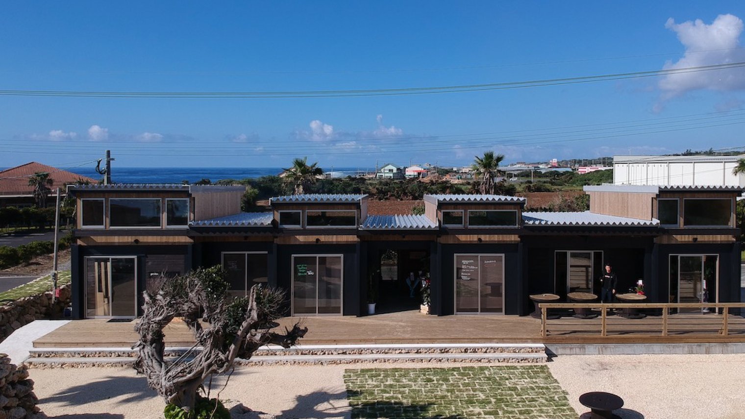 As a result, the shelters were shipped by sea to Okinoerabu Island and converted into a resort, café and small restaurant in line with the overall repurposing plan.