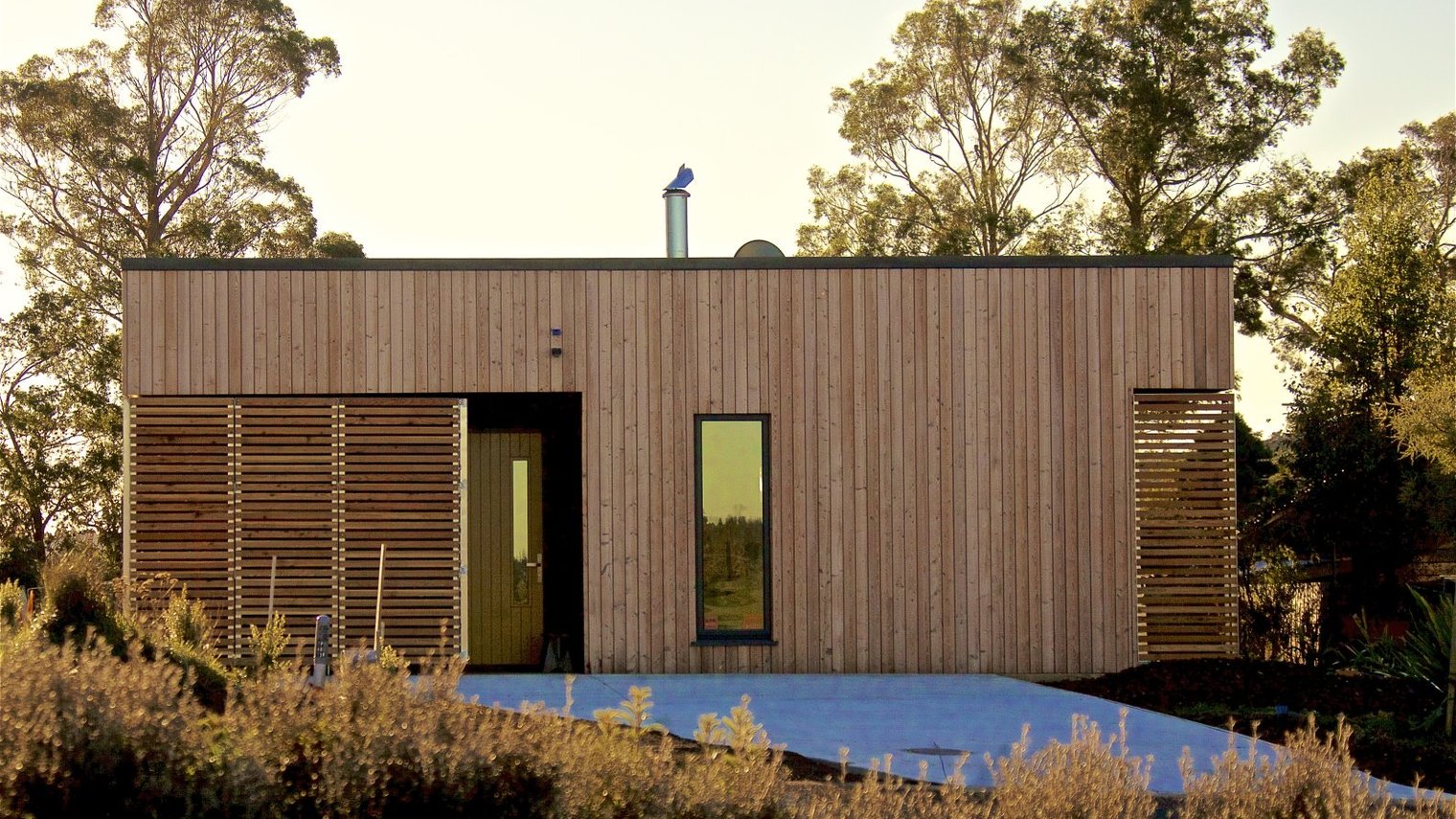 The cabin is designed to let in as much natural sunlight as possible in winter to heat up the concrete mass. In summertime, warm outdoor air is kept out, but the cabin remains visually connected to the natural elements through the generously proportioned windows.