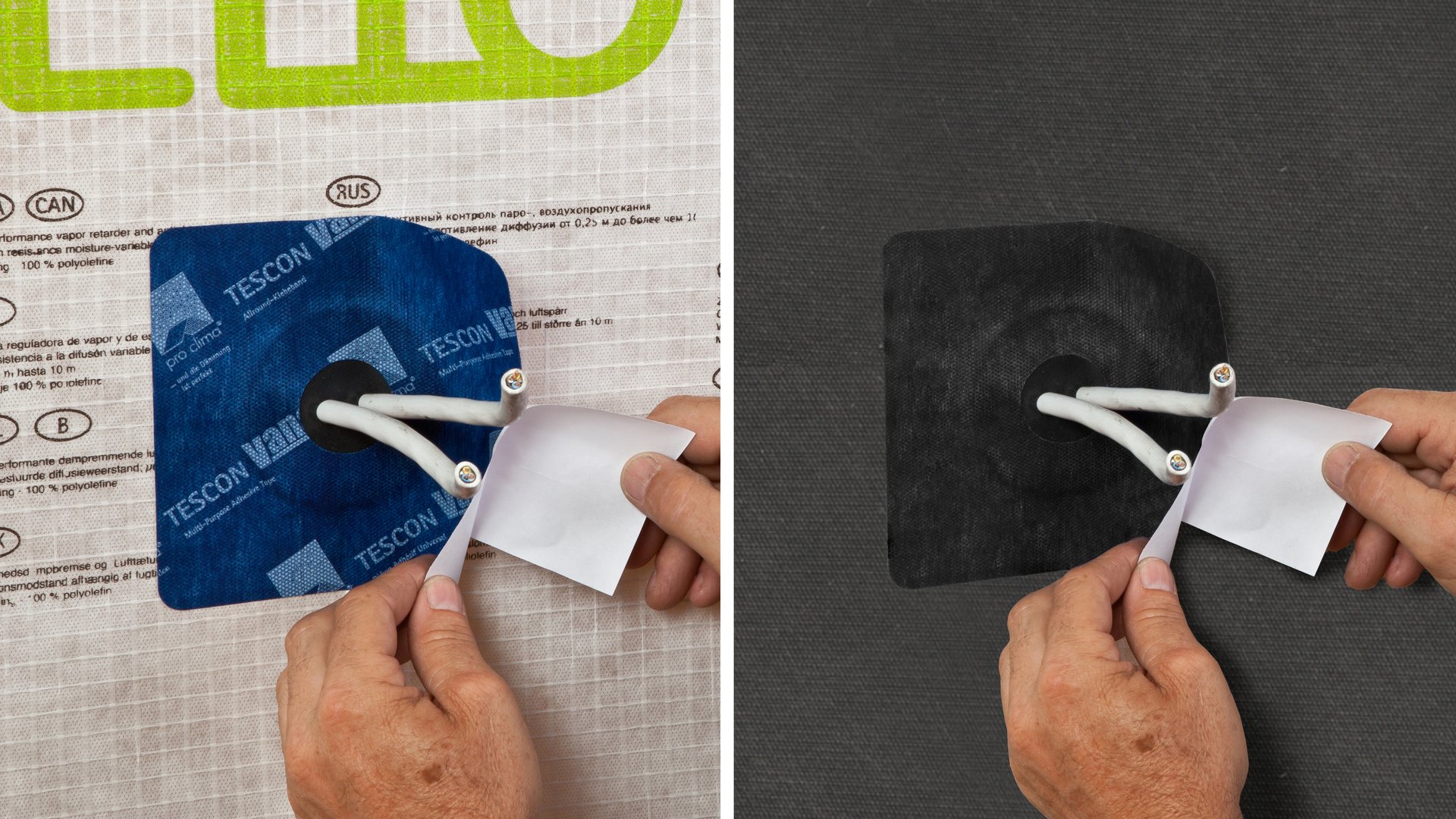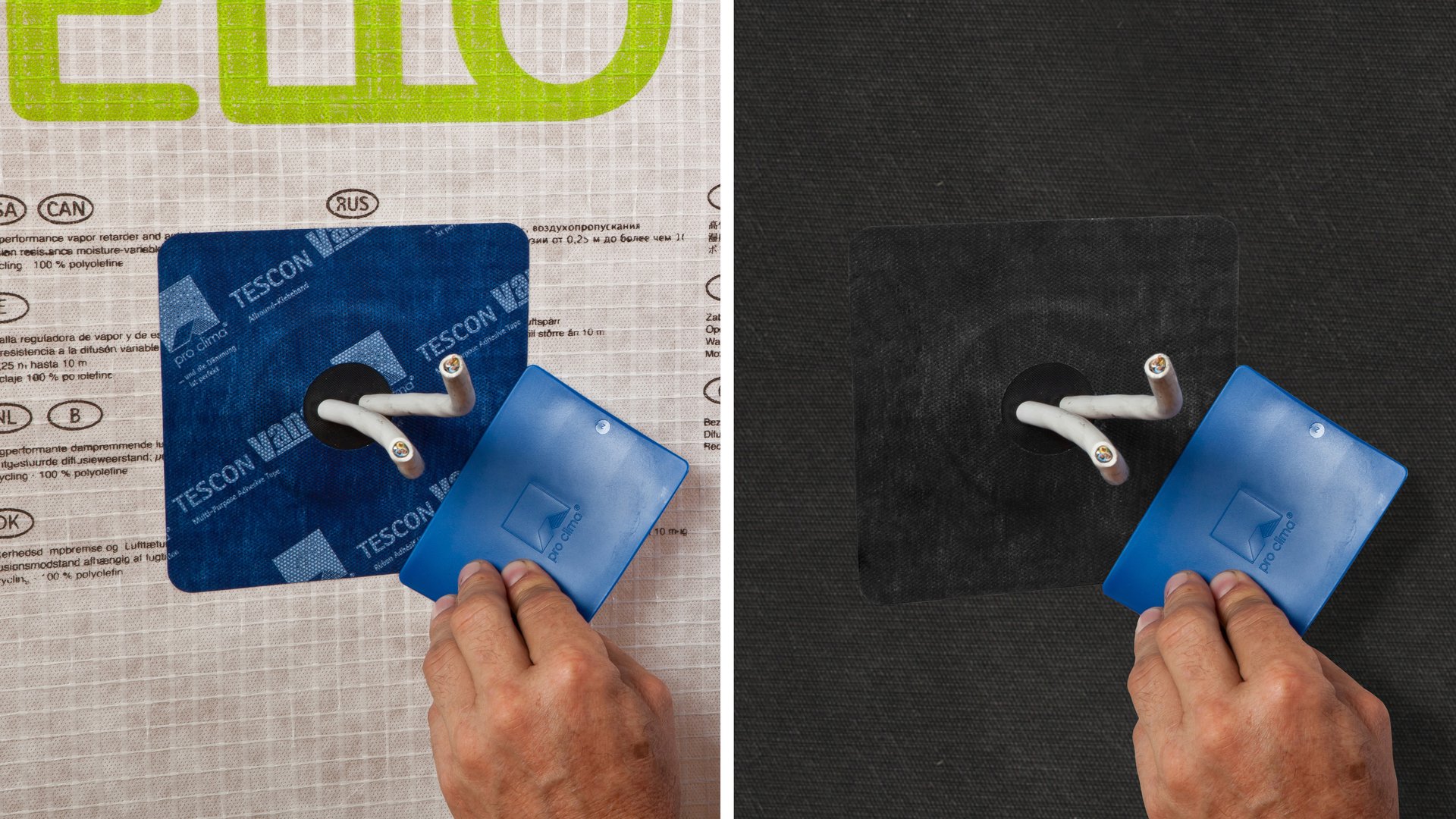 Tape the grommet to the subsurface and rub the tape firmly to secure the adhesive bond. Ensure that there is sufficient resistance pressure. This work can be carried out more efficiently and in a manner that is kinder to your hands by using the PRESSFIX application tool.