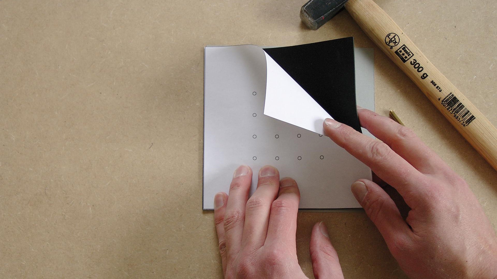 Please note: Punching must be carried out on a subsurface that does not need to be protected against damage. The cardboard base does not provide sufficient protection for surfaces that are easily damaged.