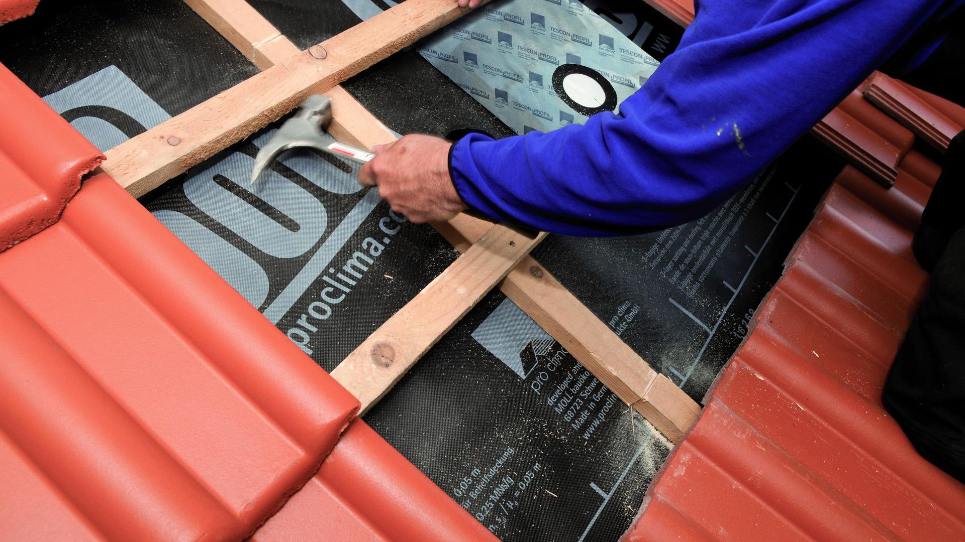 As a final step, slide in the counter batten again and fasten. Cover the area with roof tiles again.