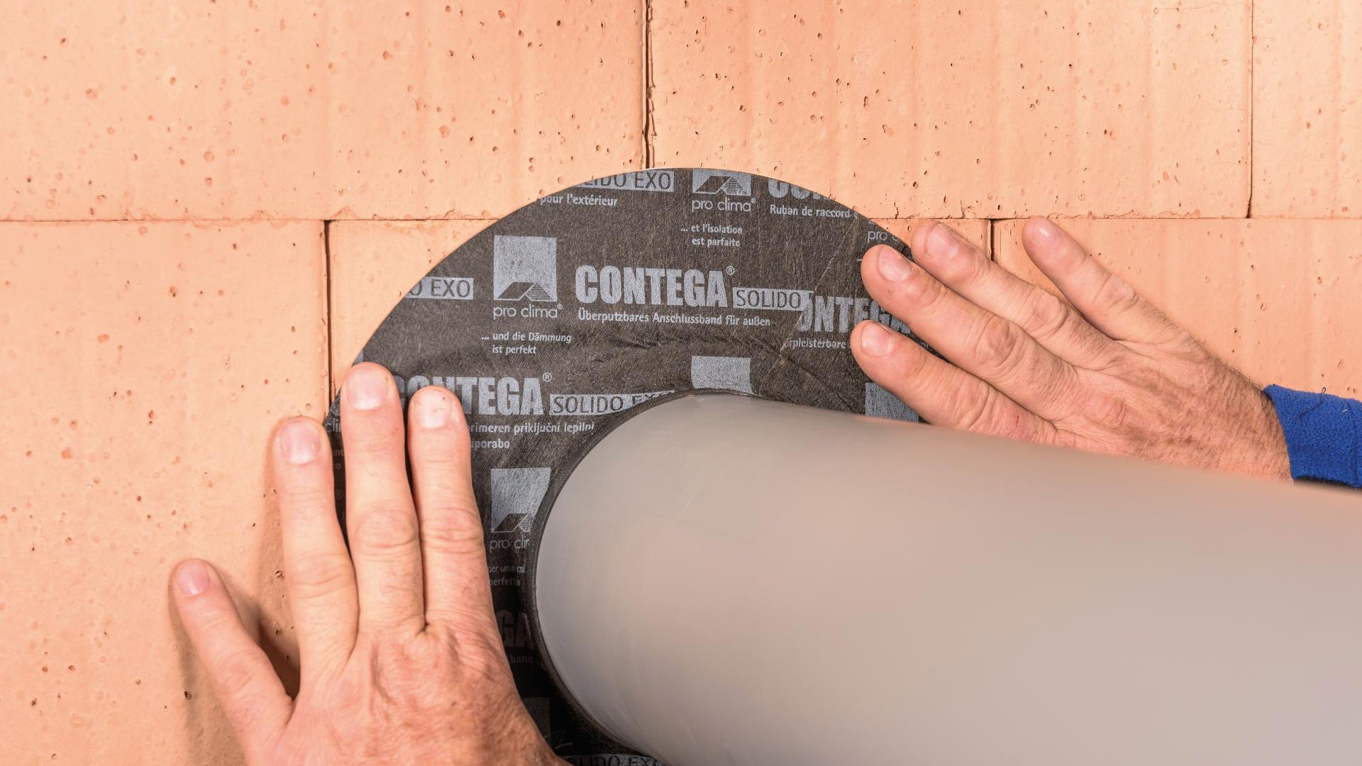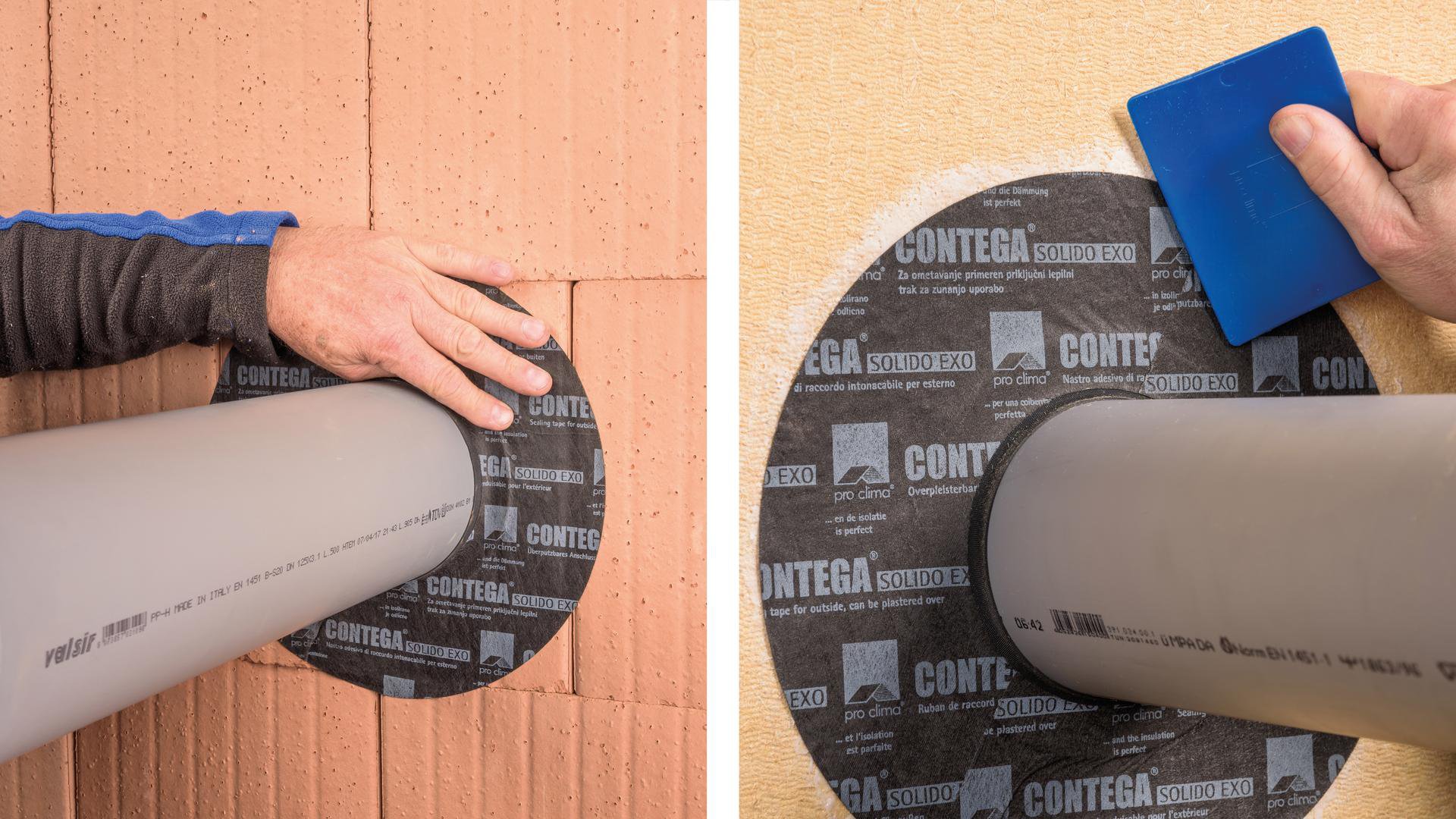 Gradually remove the release film and stick the grommet to the subsurface with no folds or creases. Wood fibre should be treated with TESCON PRIMER.