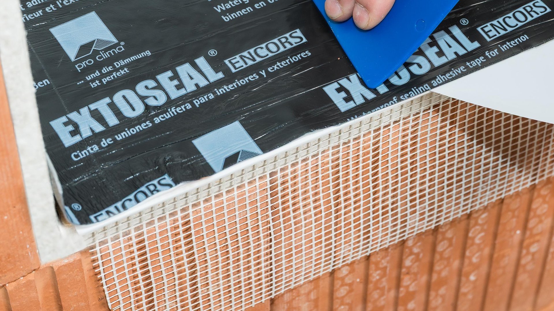 If a plaster finish or sealing filler is applied to the wall area under the window, the transition to the side reveals can be sealed with EXTOSEAL ENCORS to cover any possible cracks (capillary gaps).