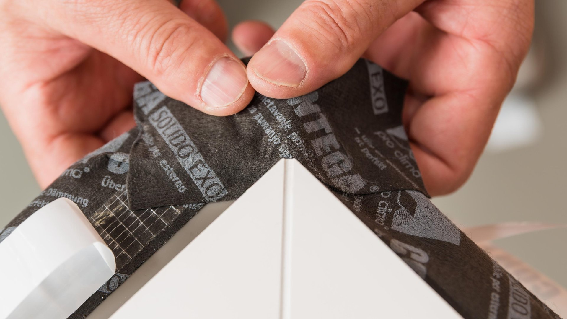 Create corner folds as shown here to make it easier to create a reliable seal to the window reveal at the corners later on.