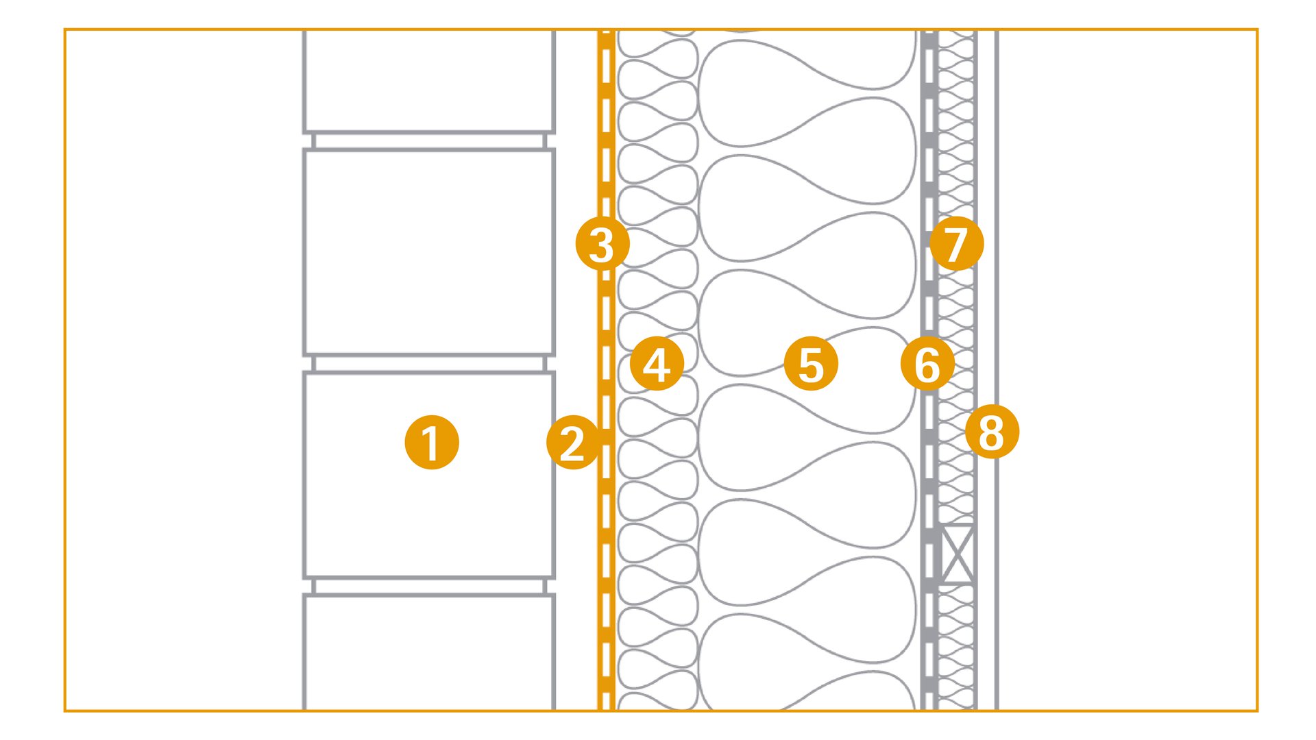 During this period, the membranes must be covered by a closed, back-ventilated pre-wall shell (e.g. faced masonry). When system connection and sealing solutions are used, building structures remain dry if installation is carried out professionally and structures are properly designed with regard to diffusion.