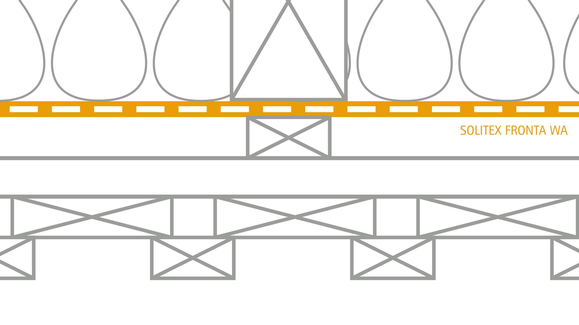 Rear ventilation of insulation materials is not required as a result of the high diffusion permeability of SOLITEX FRONTA WA. SOLITEX membranes can be installed directly onto the thermal insulation in all cases, i.e. the insulation material can fill the full depth of the structure.
