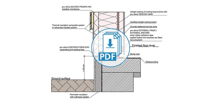 These drawings have been translated into English from German, but still feature our product recommendations for the German market. Not all of these products are available in all markets; please consult your local distributor for alternative products. Please take into account the Notes on the use of pro clima CAD drawings. By downloading any of the files here, you automatically consent to the contents of these Notes.